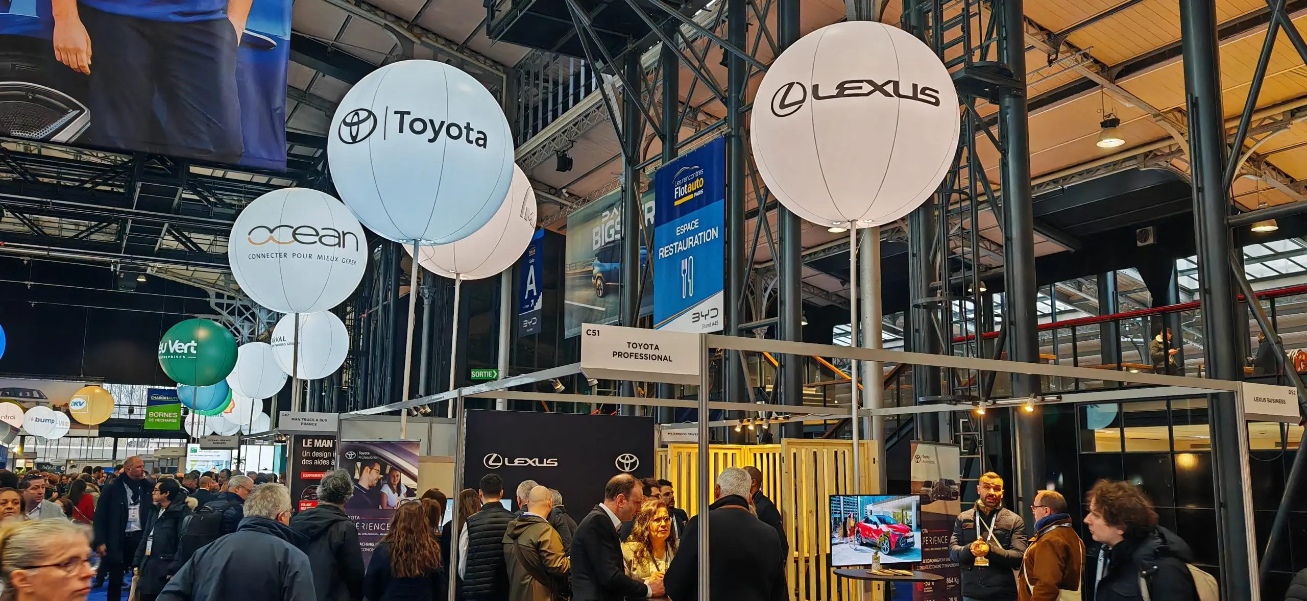 Ballon salon publicitaire, taille de 1.3 à 2m, pied platine 6m de hauteur. led 5000 lumens.